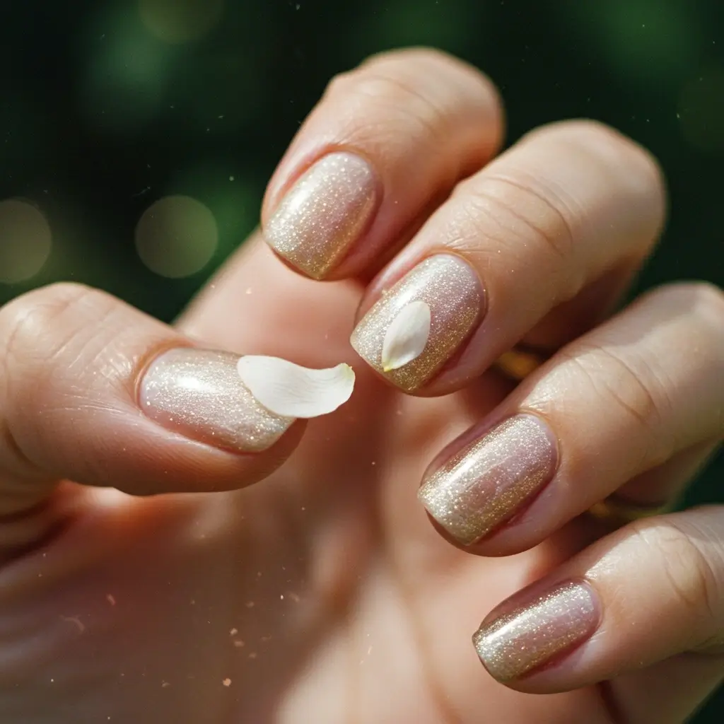 A sheer polish with a hint of sparkle enhances your natural nails. This glossy, barely-there look is pure and polished for any shower.